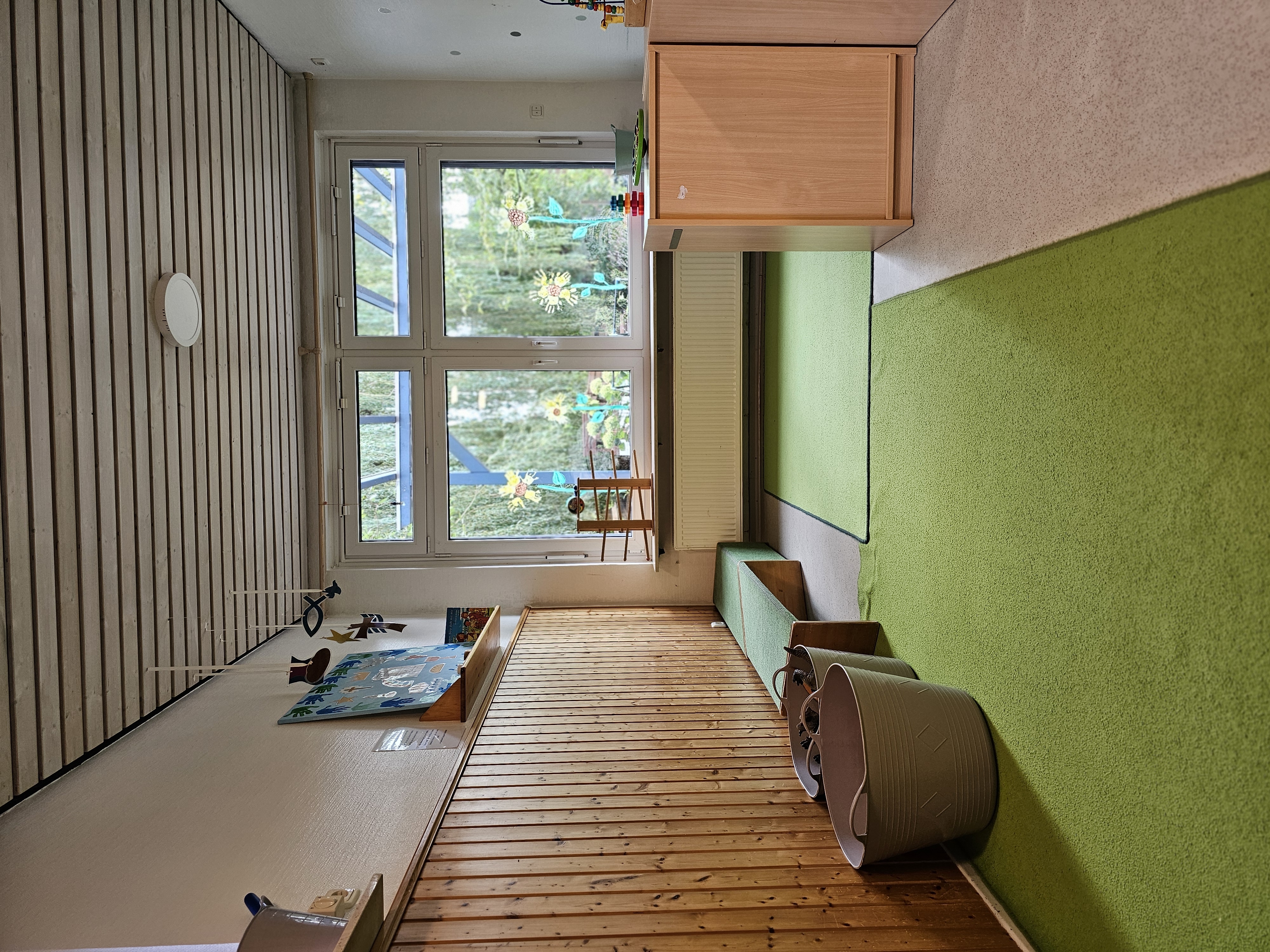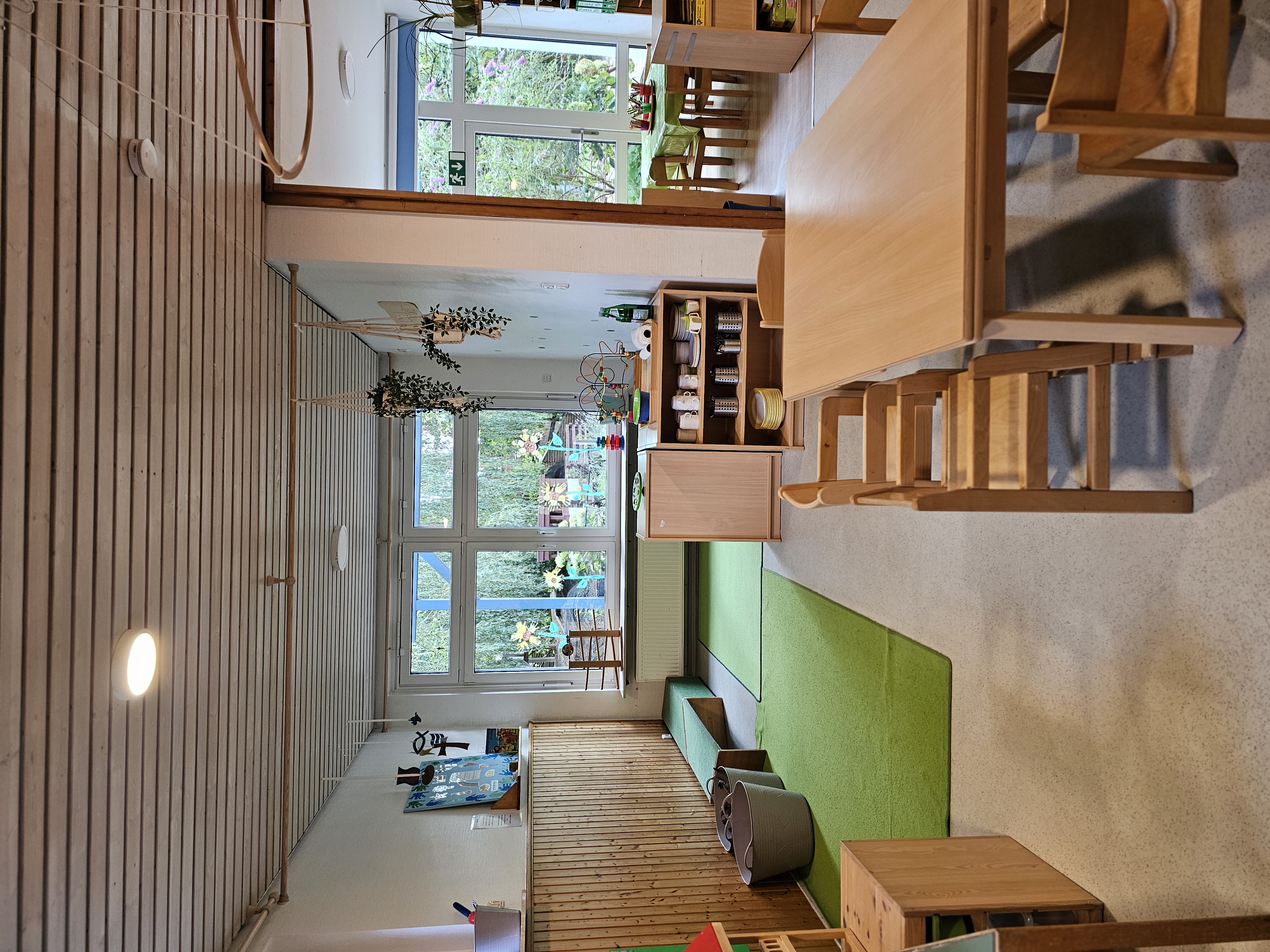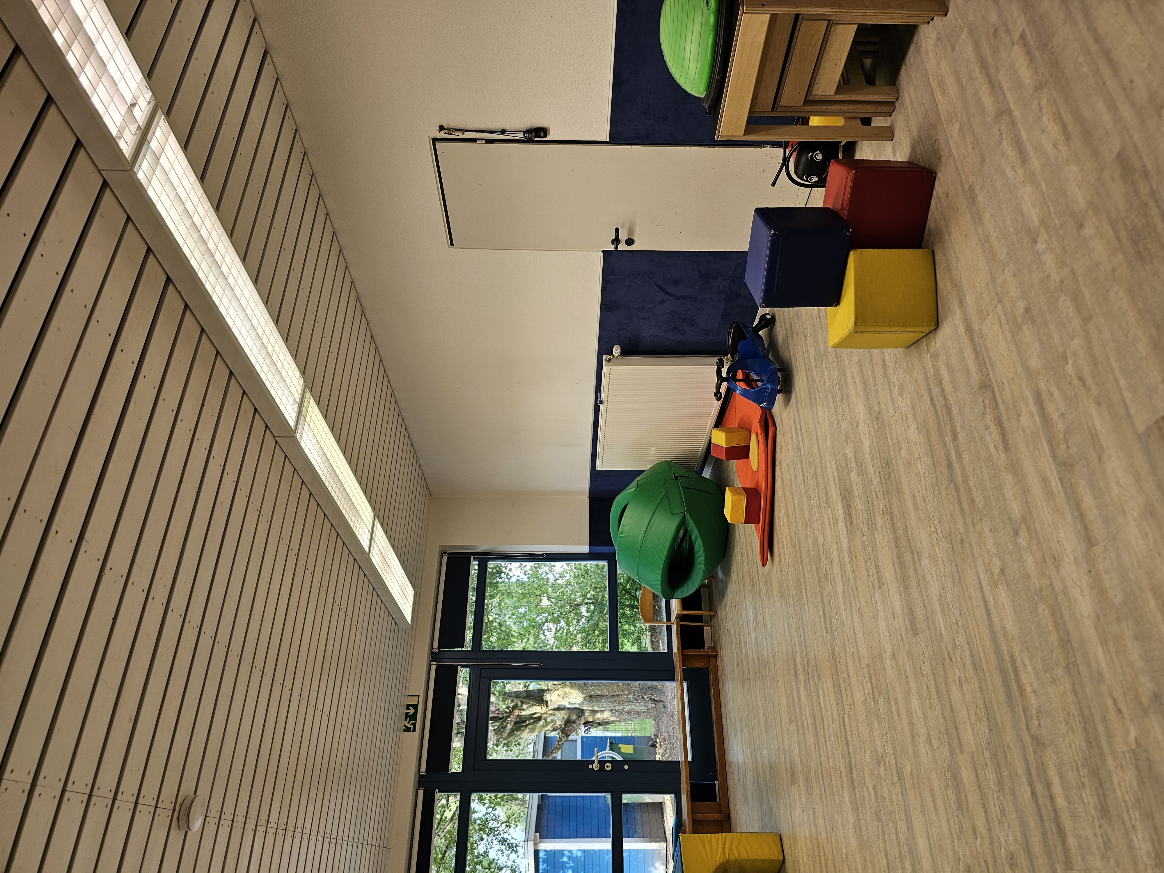 Der Bewegungsraum wird im Wechsel von den Gruppen genutzt, auch wird hier regelmäßig die Andacht mit dem Pfarrer abgehalten.