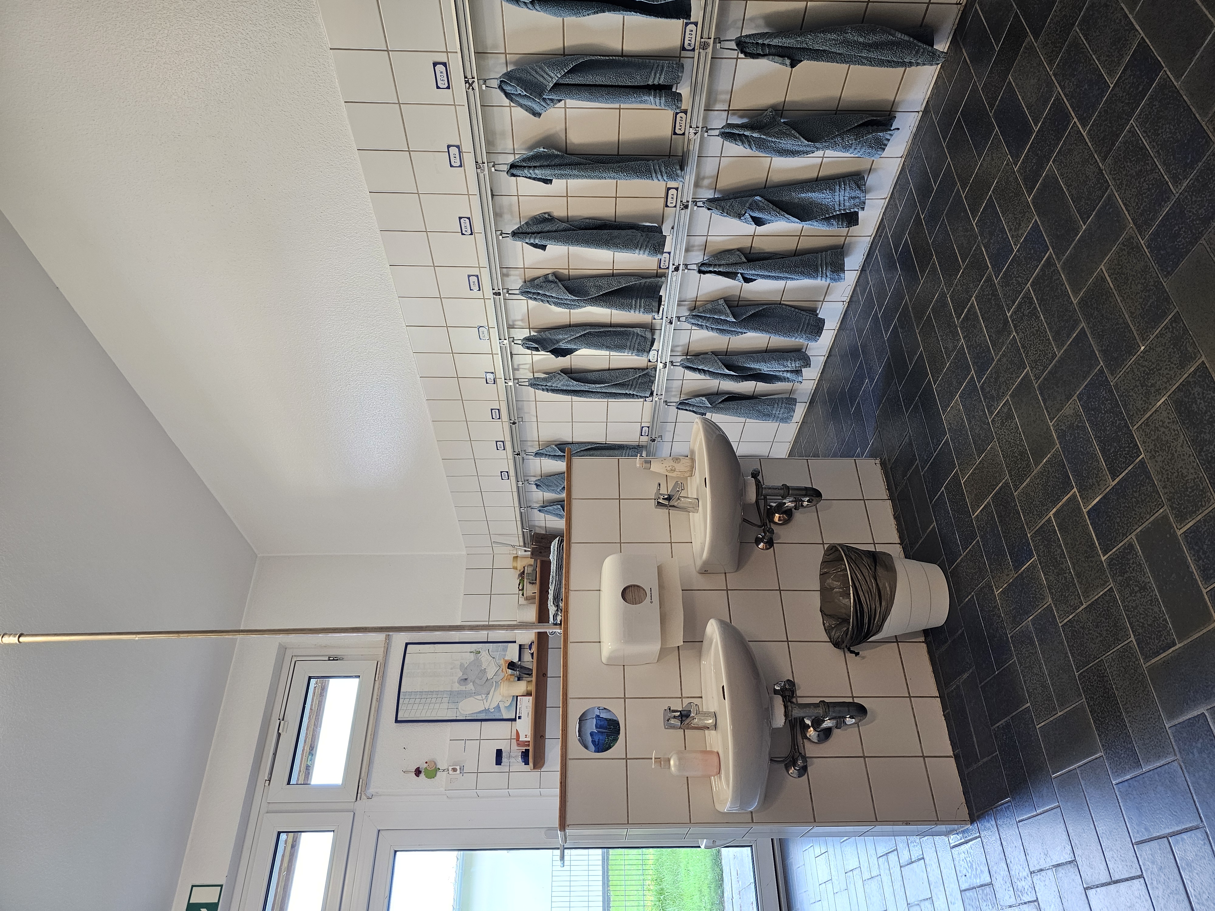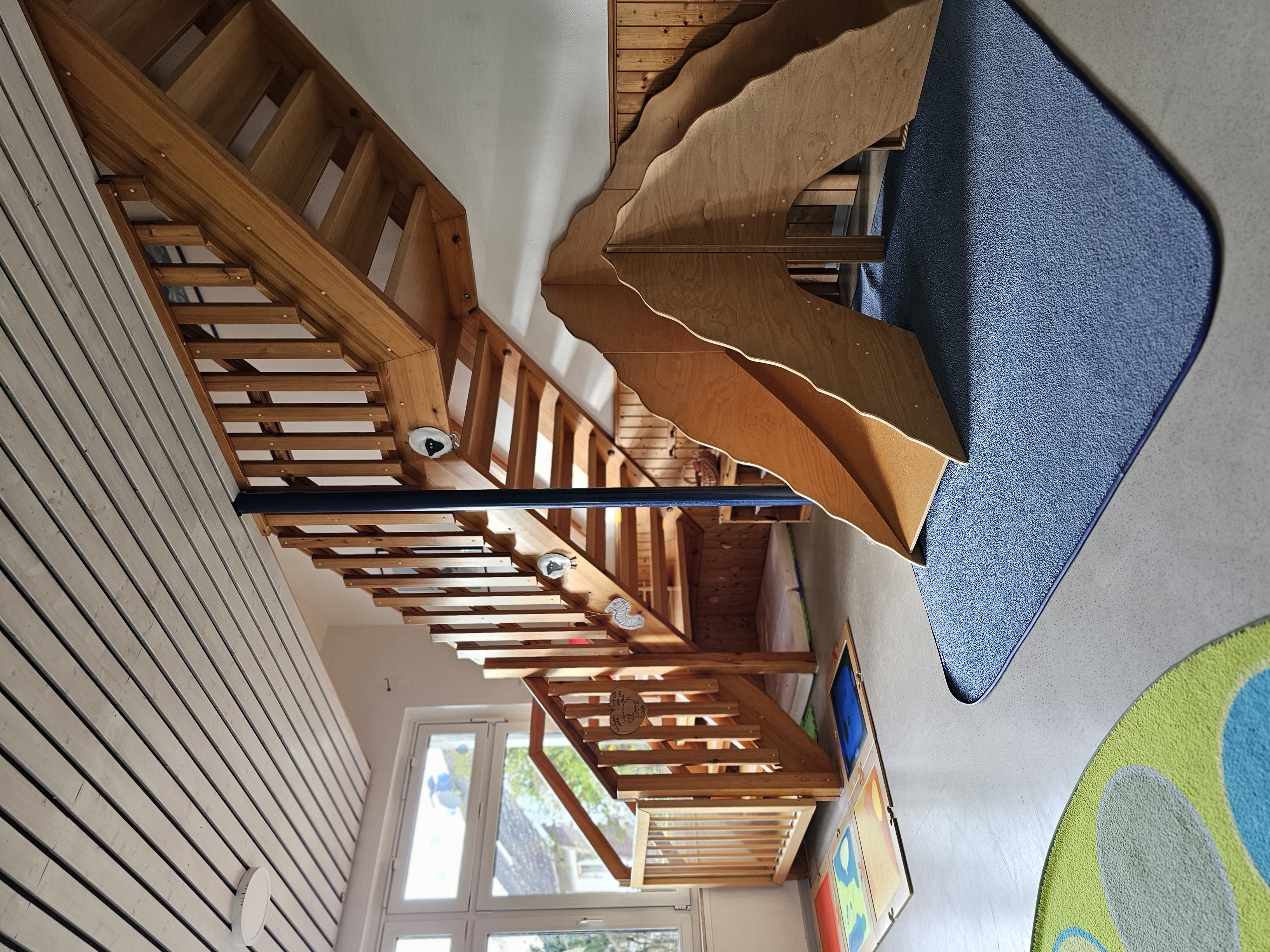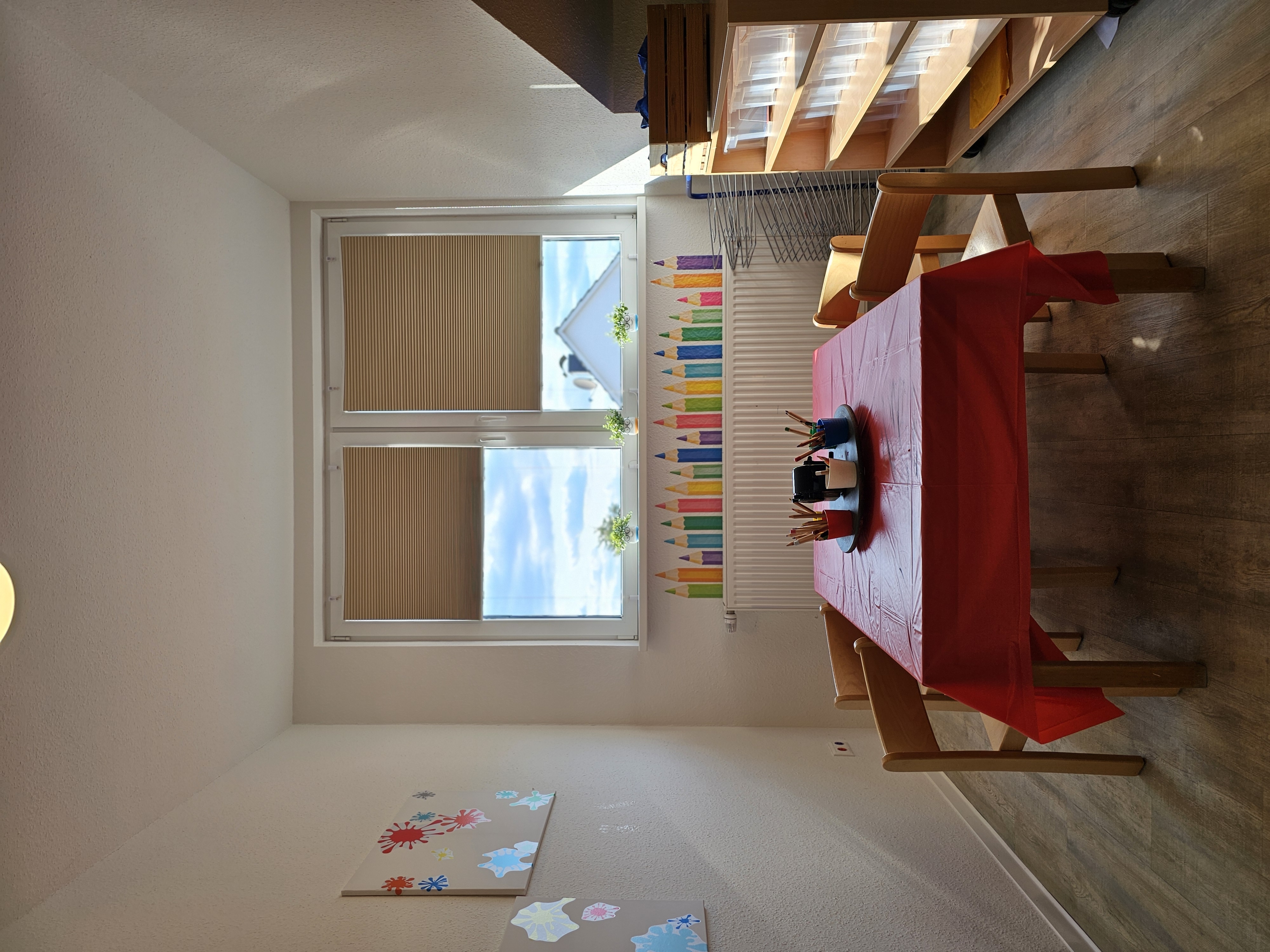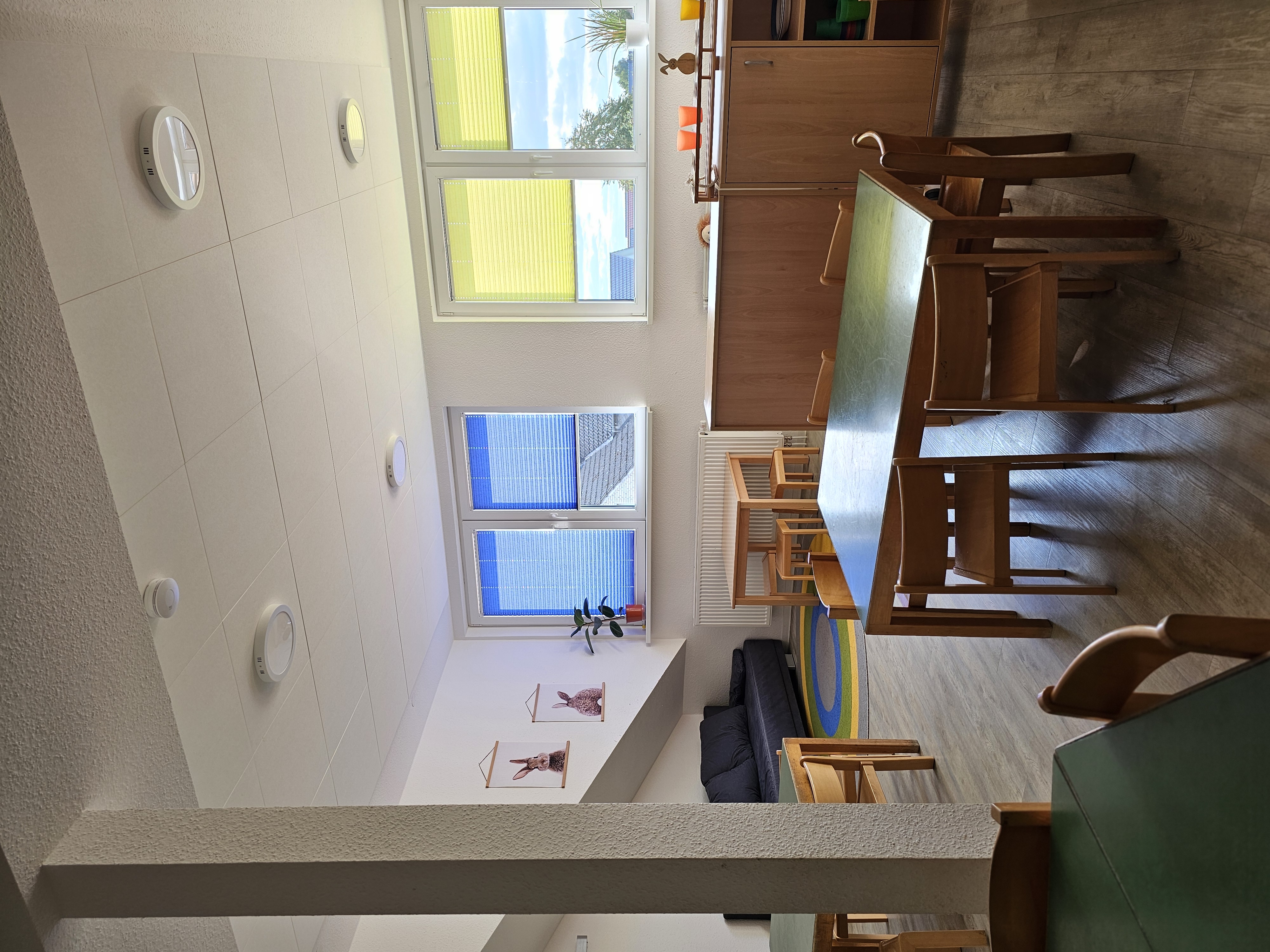 Der Bewegungsraum wird im Wechsel von den Gruppen genutzt, auch wird hier regelmäßig die Andacht mit dem Pfarrer abgehalten.
